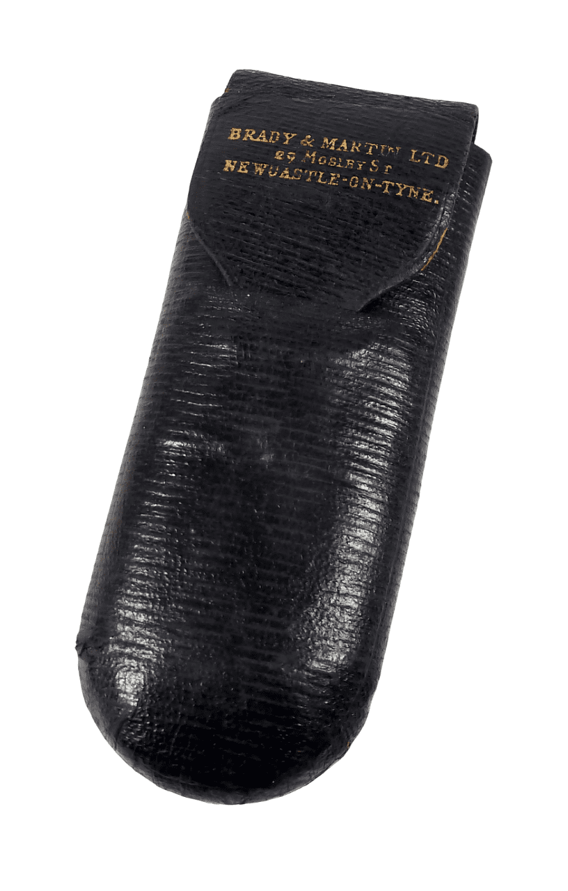Item - Antique Cased 'Double D' Folding Railway Spectacles with side lenses, Circa 1850/60s; this particular example have horn frames, white metal folding arms with beaver tail finish, tinted lenses and a Brady & Martin Ltd Case (Please See All Pics).