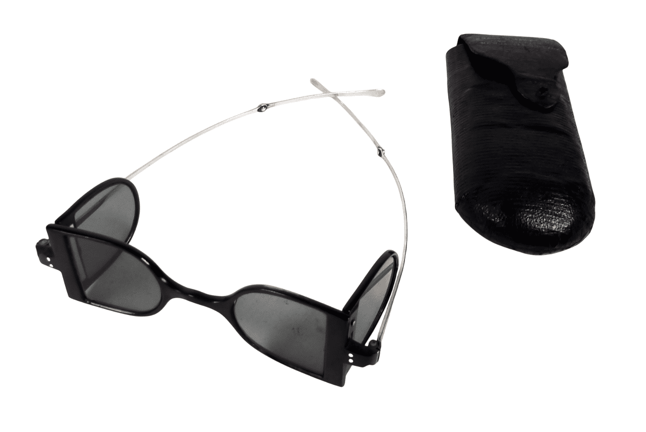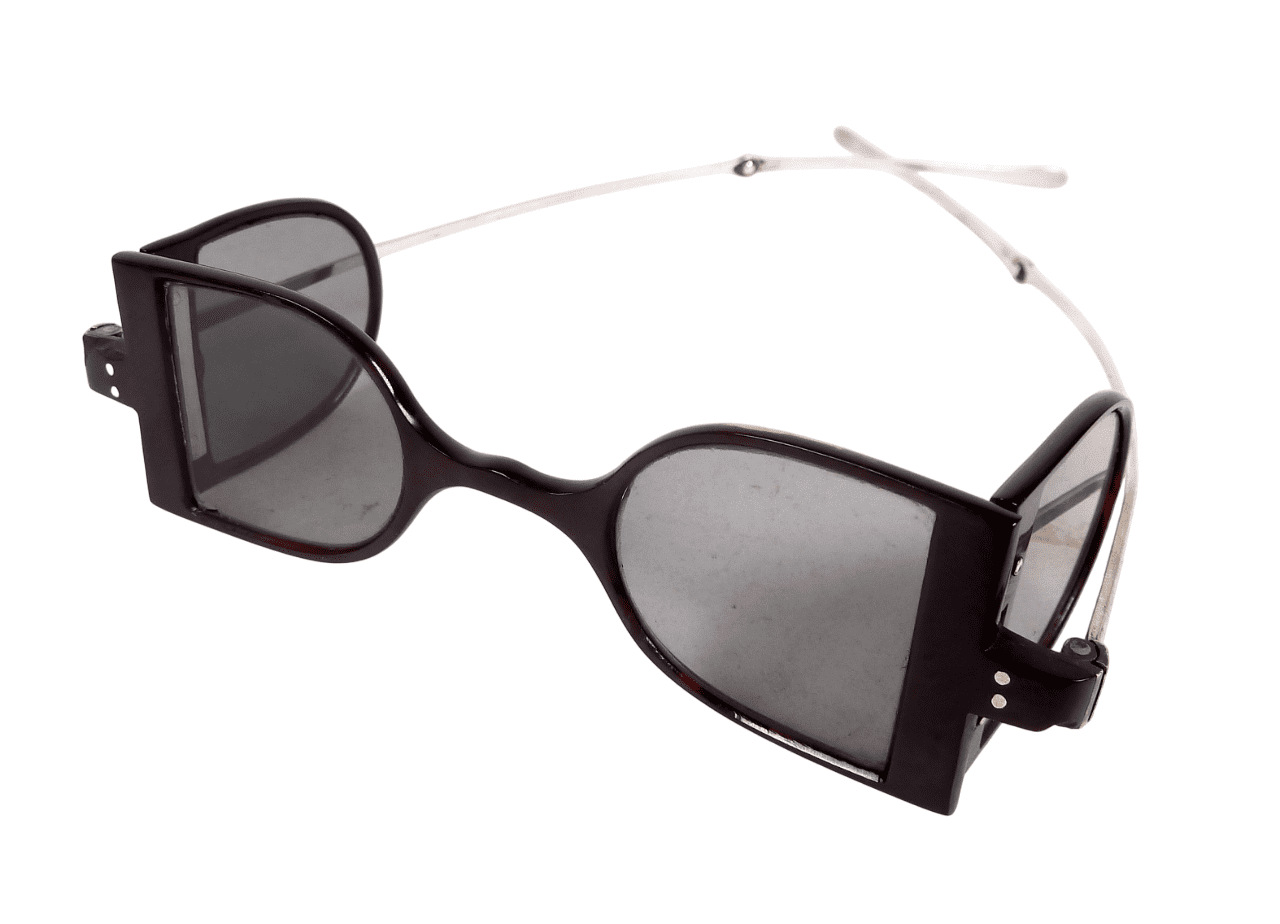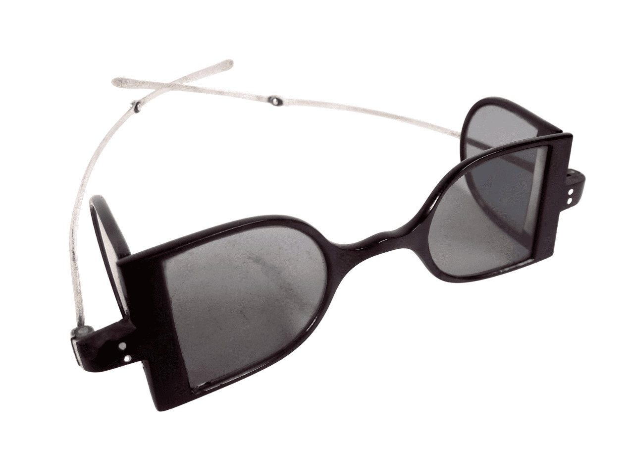 This type of spectacle was very popular around the time of early railway travel as they helped to protect the eyes from smoke & debris whilst travelling in the open top carriages of the day. .