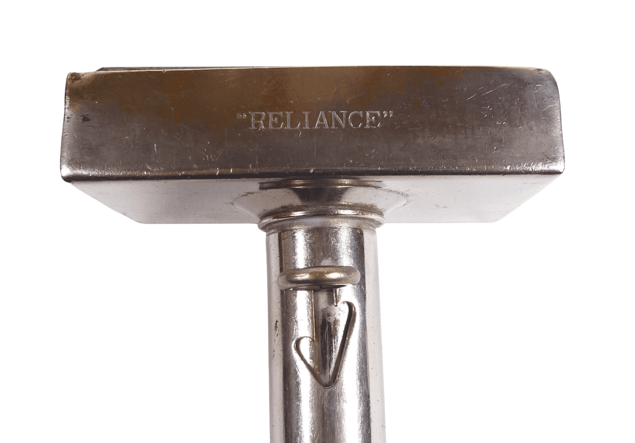 Item - Vintage Nickel Plate on Brass 'Reliance' Ice Cream Wafer Maker, Circa 1930s; this device was used by setting the handle (2 size settings), dropping a wafer in the top...ice cream was then added and smoothed with a palette knife, topped with another wafer, the loop on the handle was then pushed up to eject the complete ice cream wafer....very clever! (Please See All Pics)..
