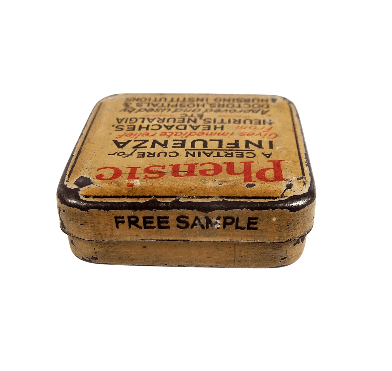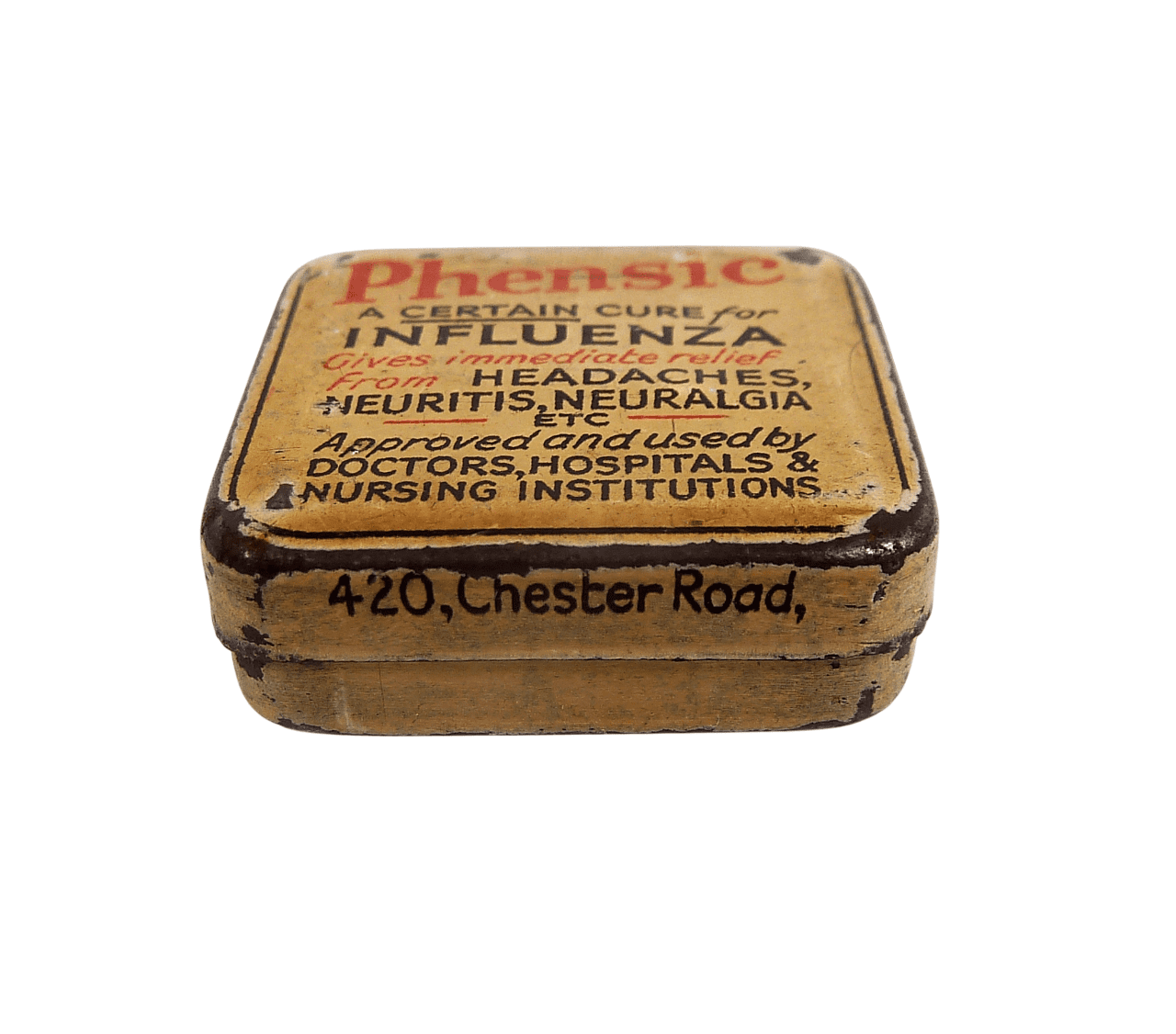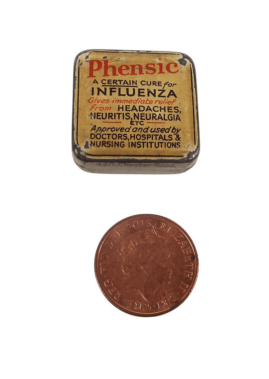 Antique Medical Phensic Ltd 420 Chester Rd Manchester Tiny Sample Tablet Tin c1930 Chemist Asprin