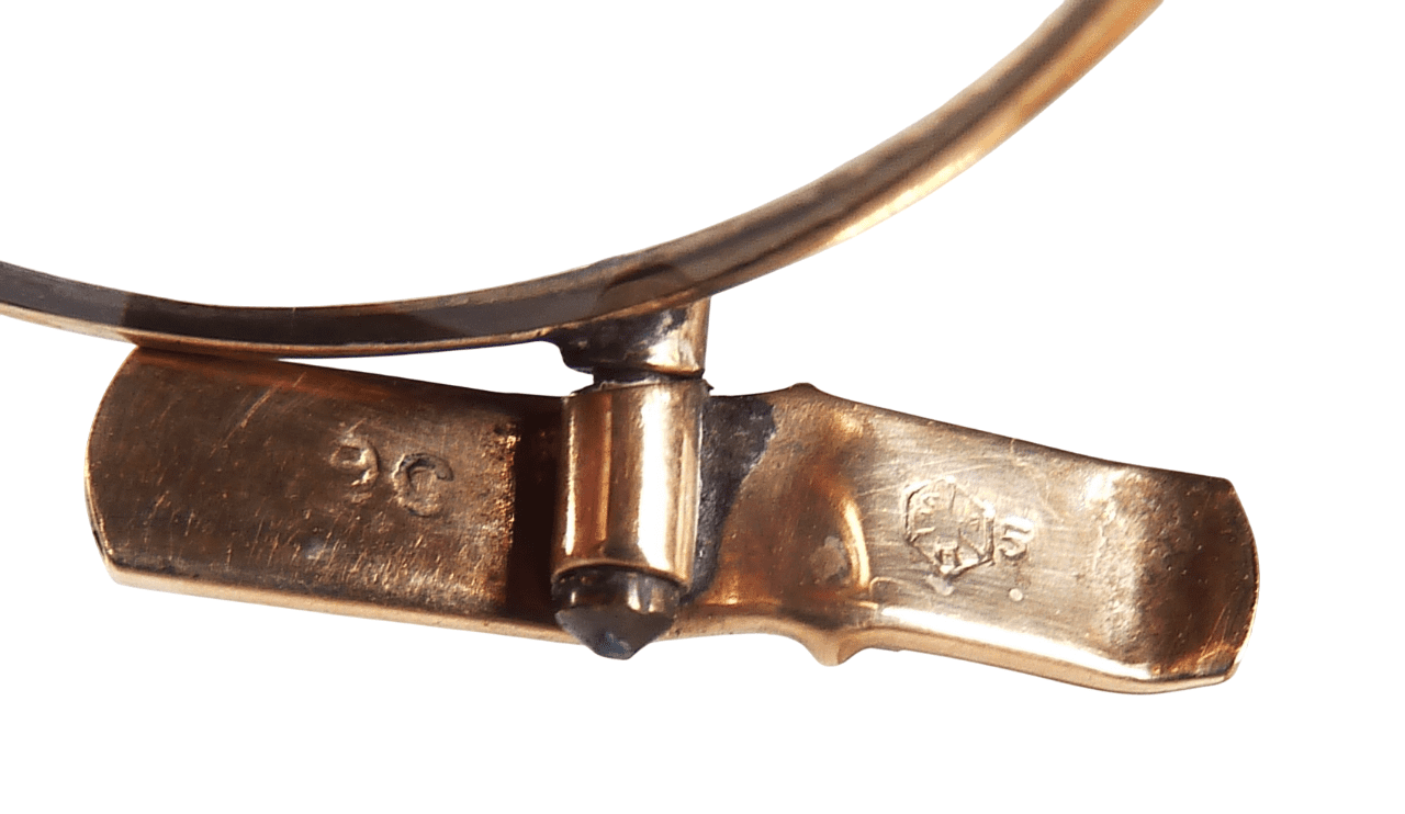 Item - Antique Cased 9ct Gold 'Pince-Nez Spring Loaded Spectacles, Circa 1870/80s; the pince-nez are stamped to the rear of both nose pieces with 9C and what appears to be a cubed makers mark containing the letters S, R and one other, but it is unclear. The Pince-Nez come with a slip case that is printed to the front in gold with - ROWLEY & SON Opticians TO THE SUSSEX EYE & COUNTY HOSPITALS 128, St JAMES ST. BRIGHTON (Please See All Pics). The Pince-Nez are spring loaded so that they can be pulled slightly apart and popped onto the bridge of the nose. .