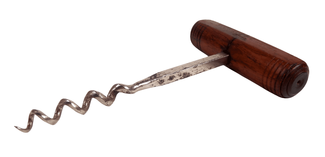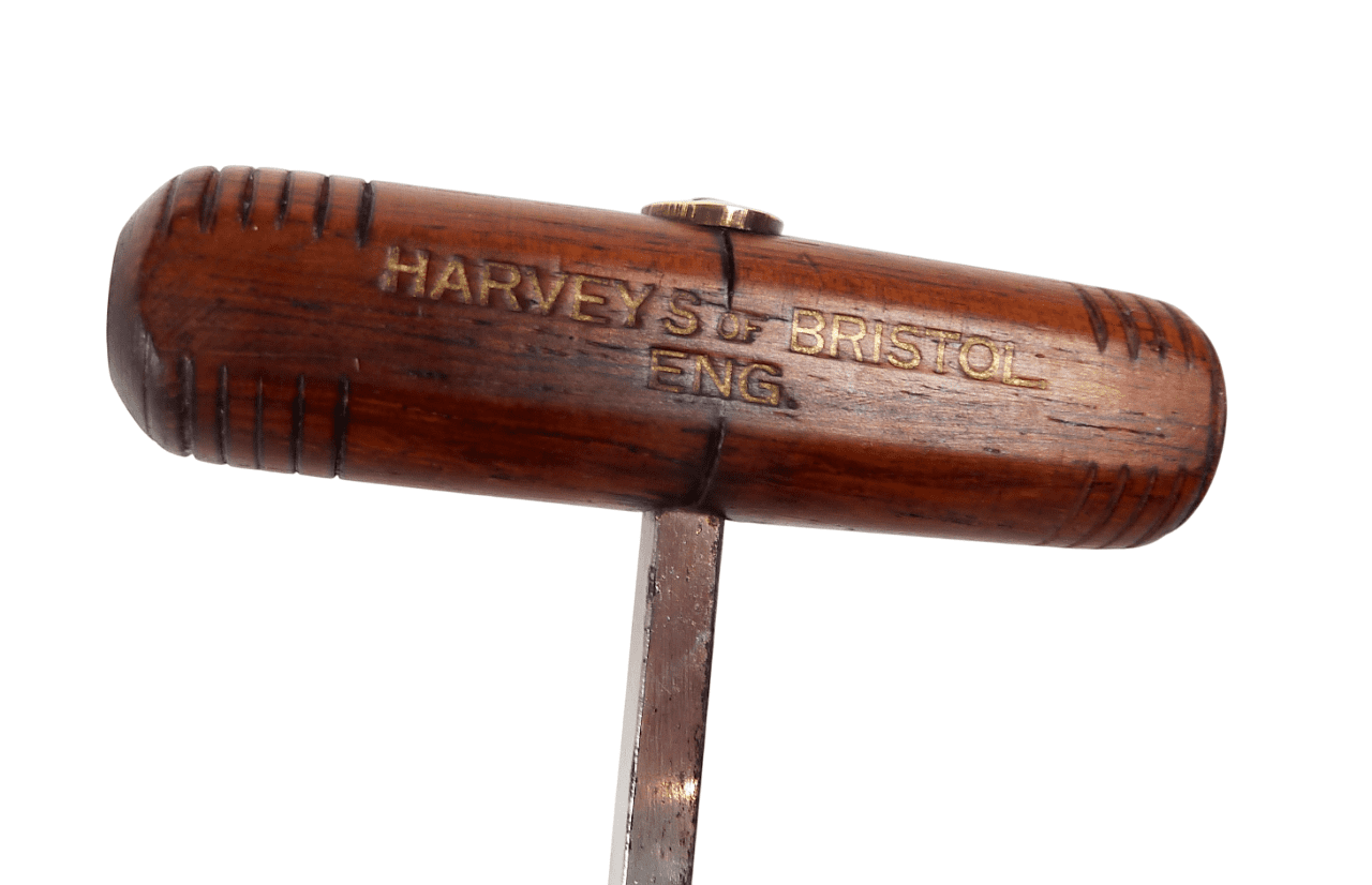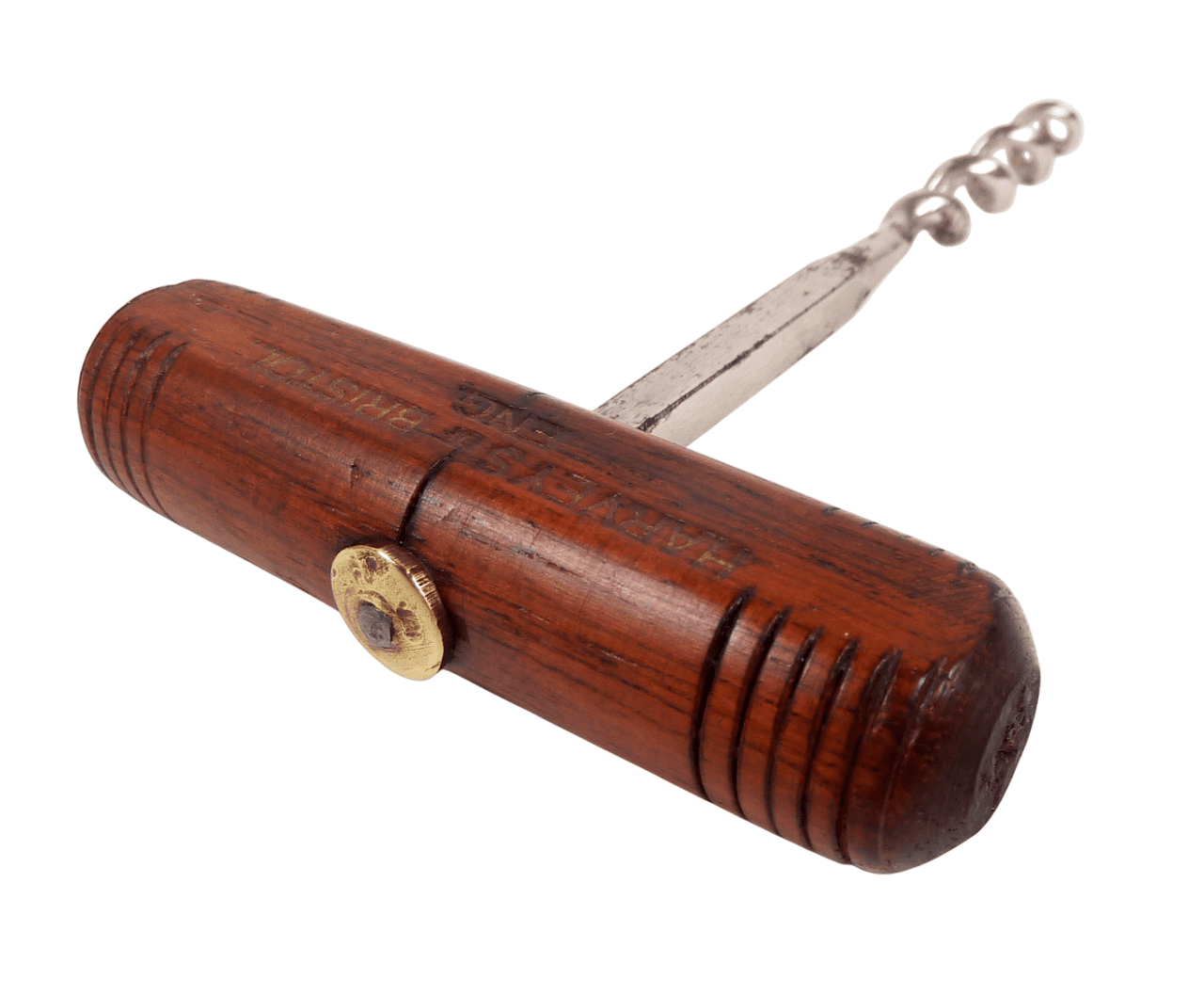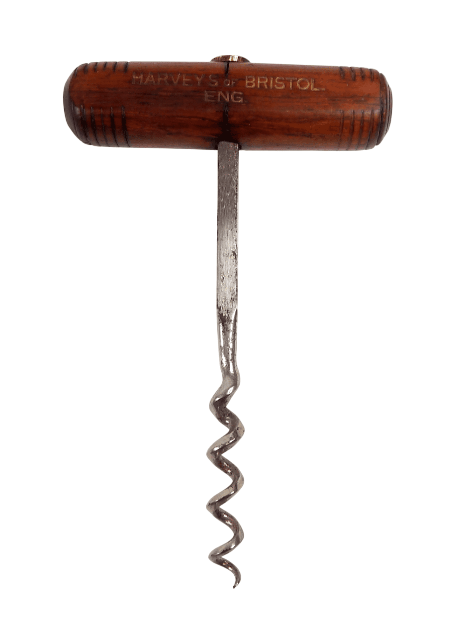 Item - Vintage Wooden Handled Direct Pull 'T' Corkscrew, Circa 1920s; stamped to the handle with advertising for Harvey's of Bristol Shooting Sherry (Please See All Pics).