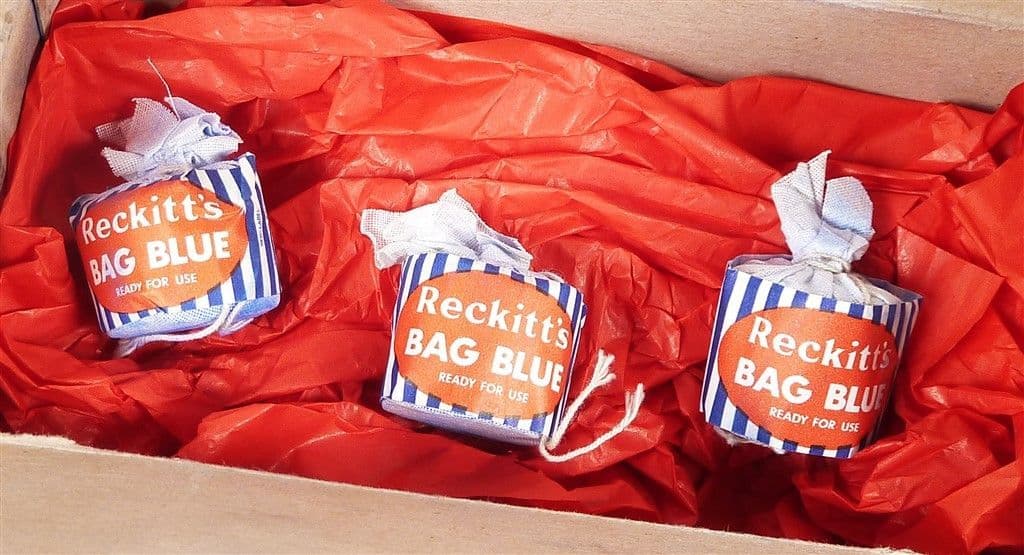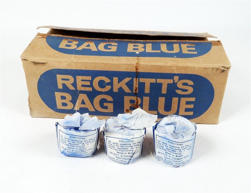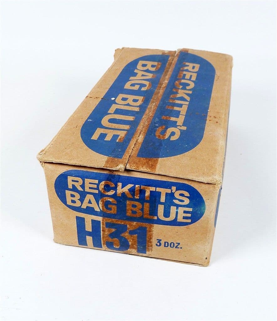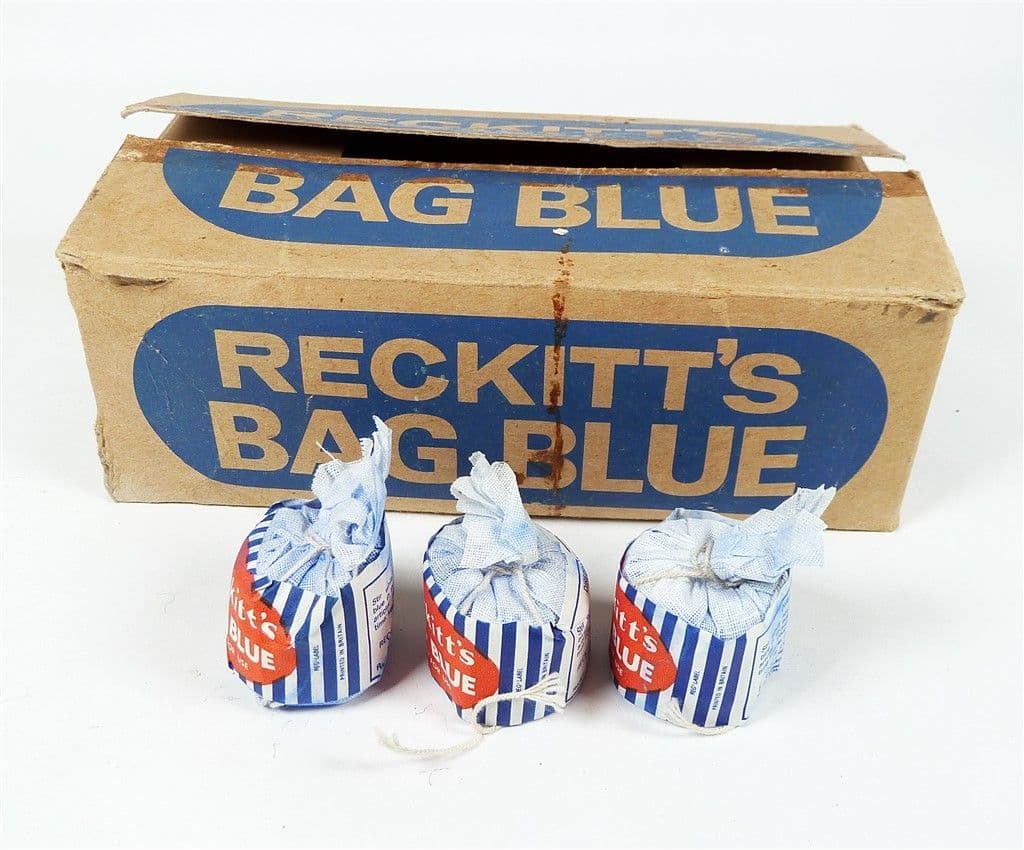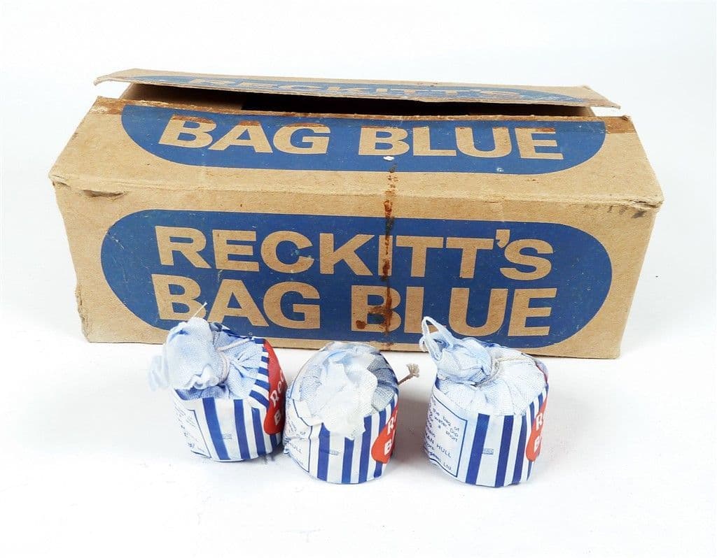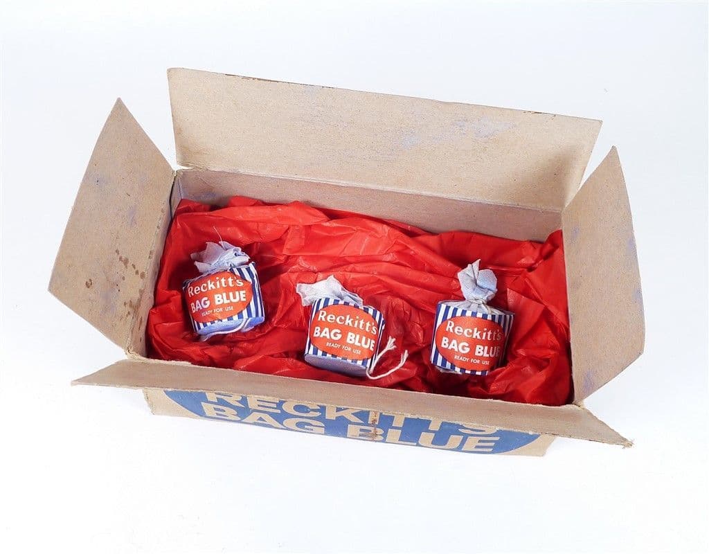 Item - One Genuine Vintage Reckitt's Trade Box complete with 3 unused Dolly Blue Bags, Circa 1950s.