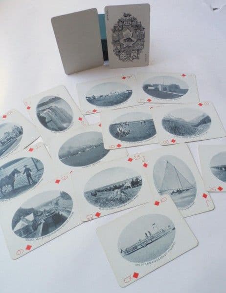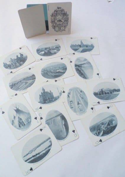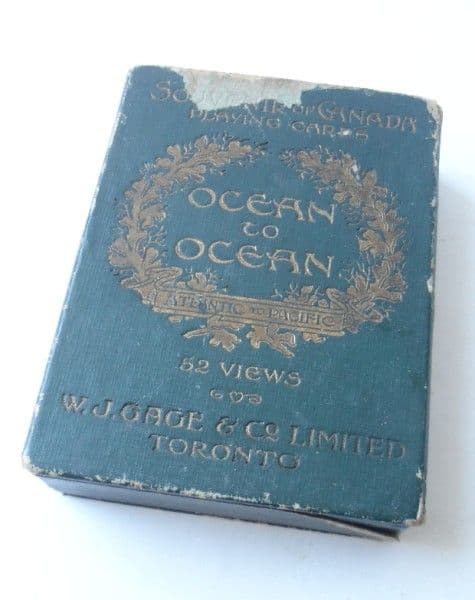 Item - Vintage Non Standard Souvenir Pack of Playing Cards - Ocean to Ocean by W. J. Gage & Co. Limited of Toronto, Canada, Circa 1920s; the pack is complete (52 Cards with each card having a different view - see below for list of views), single Joker, Blank Card & a small hand written card with the message - A Merry Xmas from Bob.
