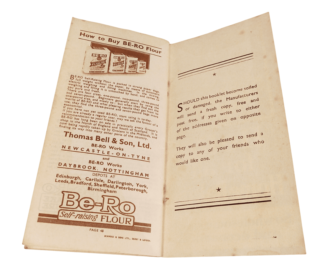 Item - Be-Ro Home Recipes Cookery Book 11th Edition, Circa 1950s; containing over 100 recipes, Hints for Oven and Cake Making, etc..., issued by The Proprietors of Be-Ro Self-Raising Flour