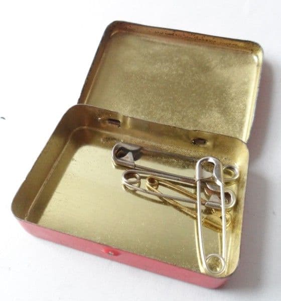 Item - Vintage Assorted Safety Pins Tin, Circa 1950s sadly most of the original contents are now gone...... (Please see all Photos)