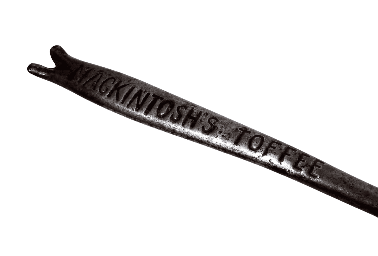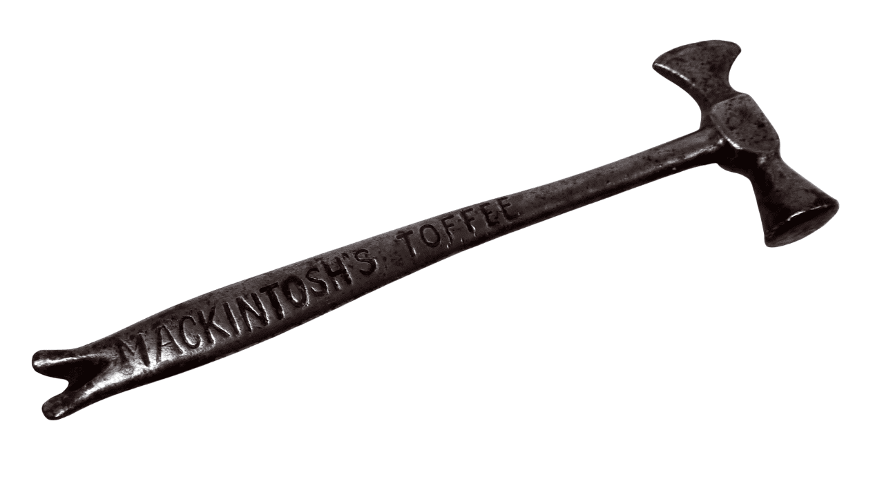 Other Interesting Points - Toffee Hammers are deigned to break slabs of hard toffee, but during the suffragette movement of the early 20th Century they were used for breaking windows as a form of showing displeasure in a political situation. This particular example dates from that period, a advertising piece for Mackintosh's Toffee is a sweet created by Sweet Shop Owner John Mackintosh of Halifax, Yorkshire, England (established in 1890), the idea for Mackintosh's Toffee, not too hard and not too soft, came soon after. In 1969, Mackintosh's merged with rival Rowntree to form Rowntree Mackintosh, which then merged with Nestlé in 1988.